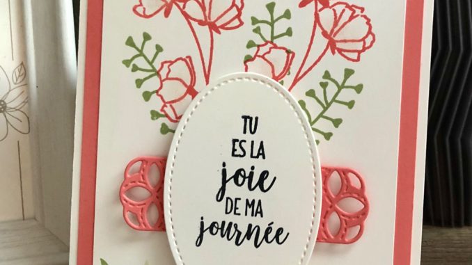 Ici j’ai mis en avant le set de tampons « love you to pieces », « ravissant bouquet » pour le message et les découpes » pièces de puzzles », je l’adore cet ensemble, il permet de réaliser facilement des projets masculins ce qui n’est pas du tout évident