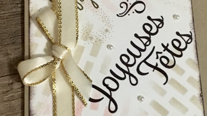 Il y a quelques temps, j’avais eu l’occasion de tomber sur une vidéo de Marika Lemay, une démonstratrice canadienne qui nous proposait de créer un fond de page à partir d’une feuille 30×30 pour ensuite en faire 4 cartes. Vous savez que j’adore créer mes fonds de page. J’ai voulu le proposer en atelier pour montrer à tout le monde que parfois il suffit de s’amuser avec le matériel mis à disposition et de se laisser porter par son imagination pour obtenir de très beaux résultats très variés et à son image