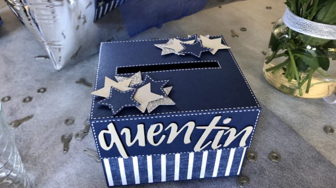 J’étais en train de préparer les 18 ans de mon fils alors je vous montre aujourd’hui la petite urne que j’ai faite pour que les gens puisse déposer leur enveloppe. Elle a la particularité d’avoir été conçue pour devenir après une boite à mouchoirs comme ça il pourra l’utiliser tous les jours