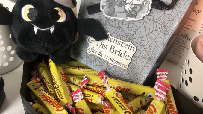 Vous avez remarqué ma petite chauve souris vampire comme elle est adorable, c’est une petite peluche que mon fils m’a acheté pendant nos vacances en Dordogne à la suite de la visite d’une grotte, elle est parfaite pour la circonstance