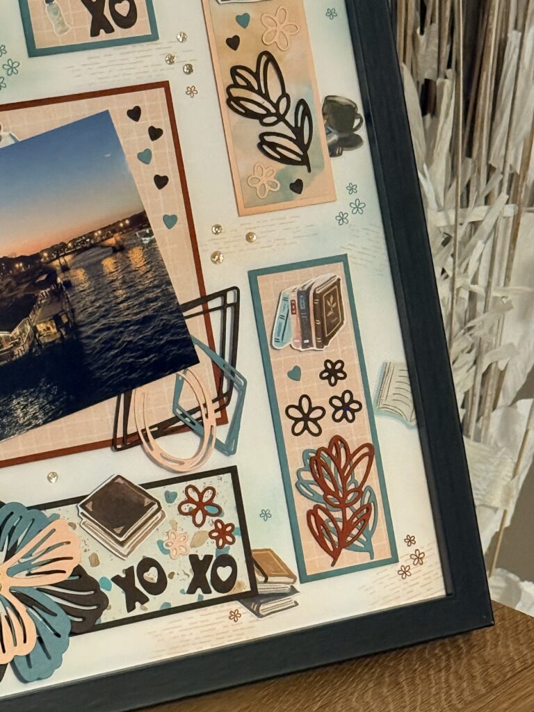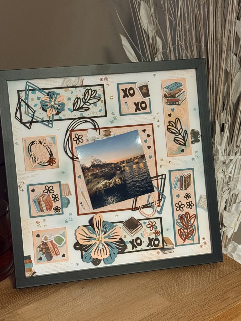 J’ai adoré ce format, qui permet de mettre en valeur une photo autrement, tout en jouant avec les papiers, les textures et les volumes. C’est exactement le genre de projet que j’aime proposer : créatif, accessible, et qui trouve facilement sa place dans notre intérieur. Et si vous voulez un cadre plus petit et plus rapide à réaliser, vous pouvez vous rendre ICI