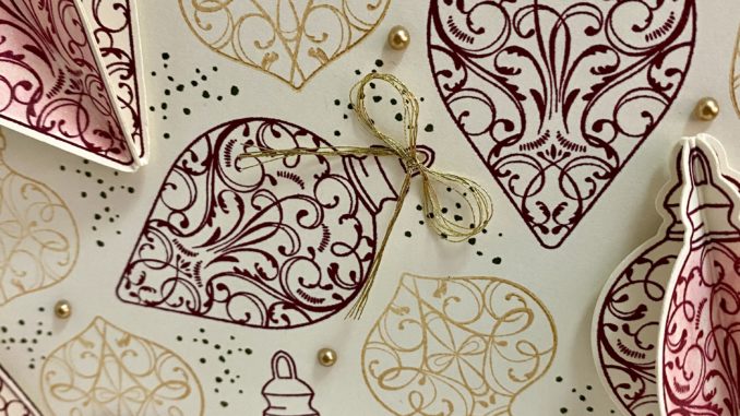 En attendant de vous montrer tout ça, j’essaierai de partager le maximum avec vous ici ou sur ma page Facebook, je vous montre une carte de Noel que j’ai réalisée avec les tampons et les perforatrices boules de Noël