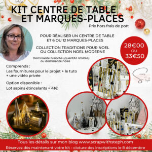 Je suis très heureuse de vous présenter mon nouveau kit créatif, un projet que j’ai imaginé avec l’aide de ma copine Lisa Scrap and Co pour embellir vos tables de fête avec élégance, chaleur…