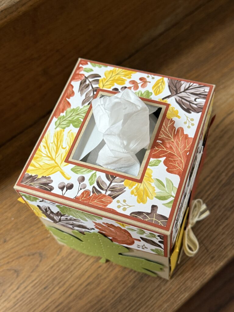 Aujourd’hui, je vous propose un projet créatif plein de chaleur et de douceur : une boîte à mouchoirs carrée, entièrement habillée avec la collection de papiers Tas de Fun et le lot Moments Ensemble de chez Stampin’ Up! de quoi pouvoir composer avec tous les rhumes qui nous attendent. En 2020, je vous avais proposé un modèle rectangulaire ICI.