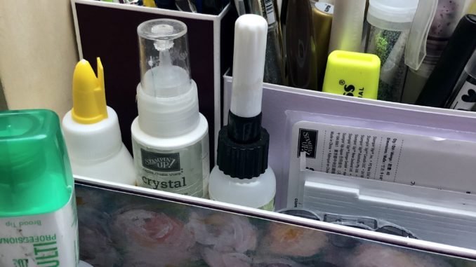 Du coup j’ai refait mon espace de travail avant mes congés et j’avais sur mon bureau tout un tas de petits pots et de mini bacs pour ranger mon bric à brac entre mes 2 « meubles » à perforatrices (si vous en cherchez c’est chez 1001 boites)