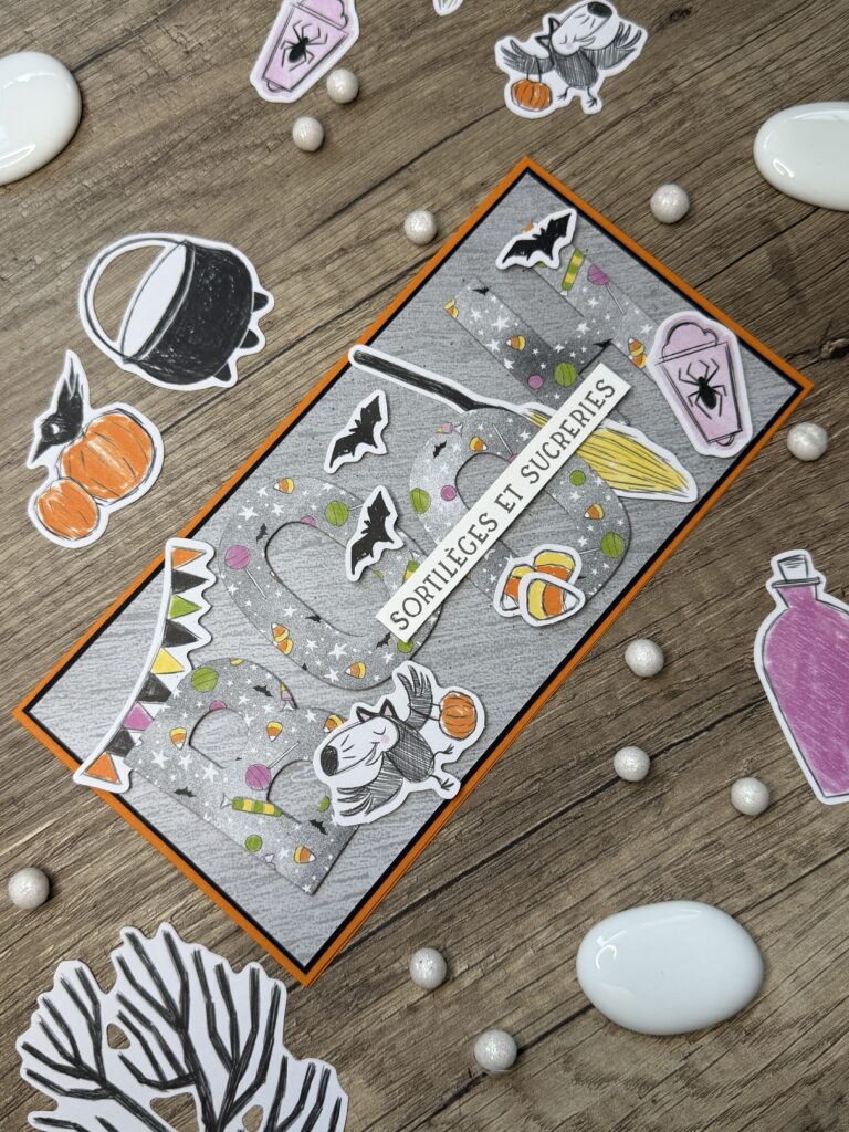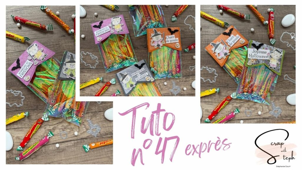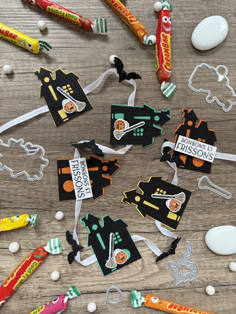 Et pour finir, Halloween ne serait pas complet sans une petite attention gourmande ! Grâce aux poinçons Fanion, j’ai créé de jolis sachets de bonbons. Quelques découpes, un peu de papier imprimé et le tour est joué pour offrir une surprise qui ravira les gourmands.