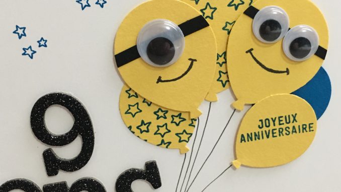 Je vous retrouve aujourd’hui pour que je vous montre la carte que j’ai réalisé pour ma petite nièce qui est super fan des minions