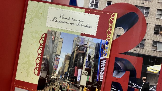 Cet album a été construit à 4 mains comme on en a l’habitude autour de la collection de papier « Noël arrive ». C’est une collection de papier qui avait été proposée à la vente jusqu’à épuisement des stocks et sur laquelle on avait eu un véritable coup de coeur