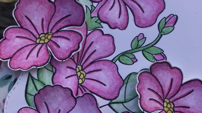 C’est pour l’anniversaire d’une de mes collègues que j’ai fait cette carte en volume avec le tout nouveau set de tampons qu’on vous proposera à la vente en exclusivité au mois d’aout. Il est très complet puisque c’est un set de tampons 4 saisons et il est assorti à des découpes très travaillées qui permettent de faire des étiquettes, des découpes de fleurs, de feuilles …..