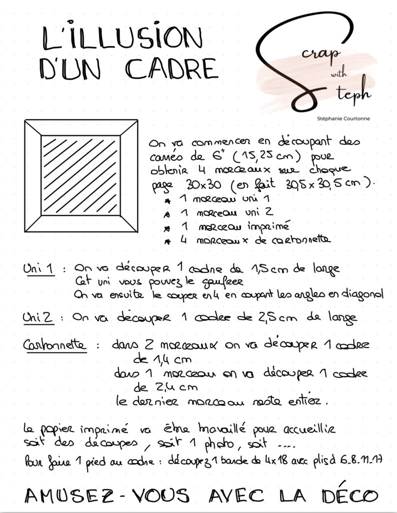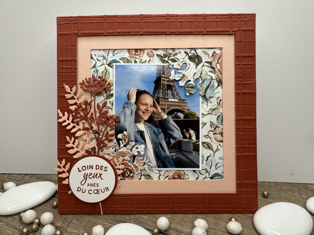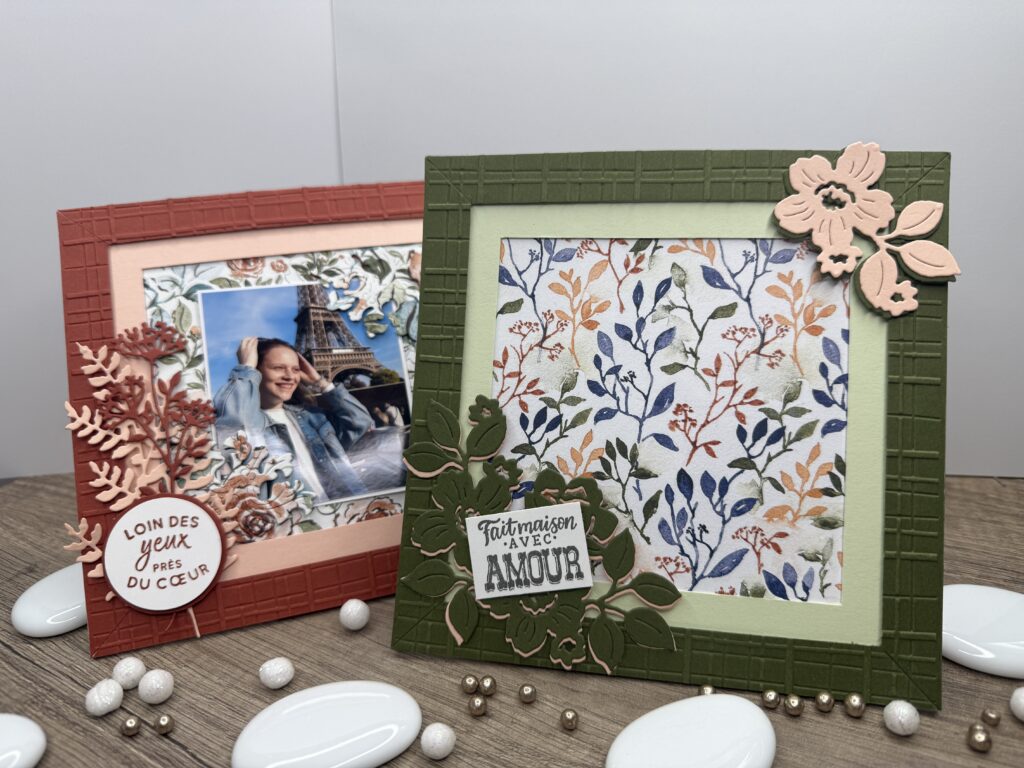 C’est un projet parfait pour les débutantes comme pour les scrapeuses confirmées qui aiment les effets astucieux. Avec quelques découpes et quelques pliages simples, on obtient un résultat très décoratif, idéal pour offrir ou pour embellir votre intérieur en mettant une photo, ou une citation, en valeur par exemple.