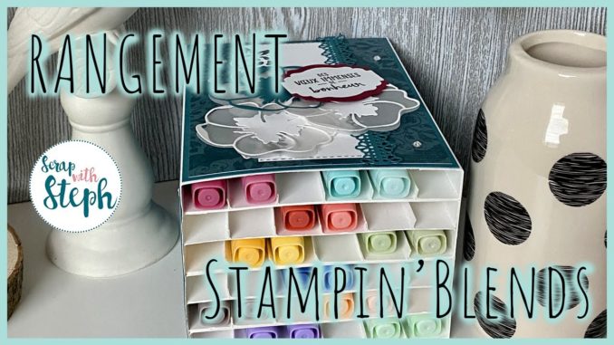 Aujourd’hui c’est la réalisation d’une boite de rangement pour les Stampin’blends, les feutres à alcool de chez Stampin’Up que je vous propose. Ces feutres nous permettent de créer de très jolies colorisations. Si vous voulez en savoir plus sur ces feutres, n’hésitez pas à me contacter, je me ferai un plaisir de vous aider