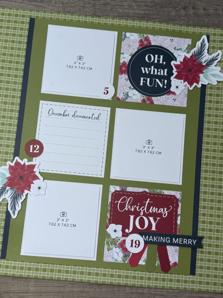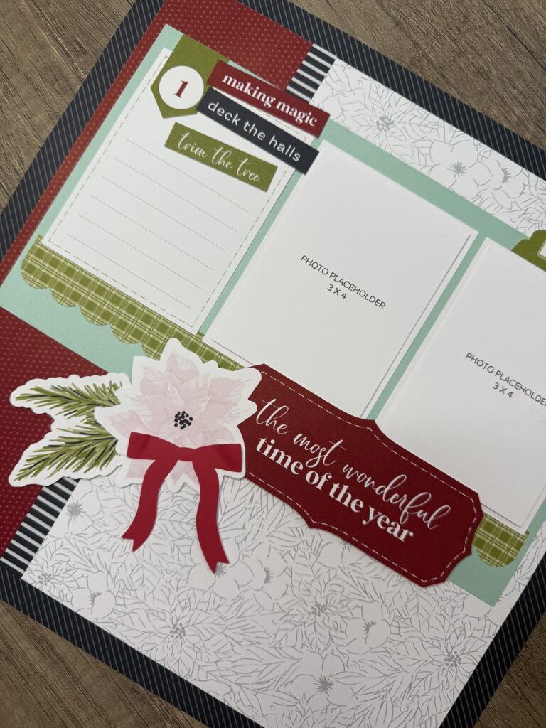 Pour ma part, j’ai choisi le kit sur le thème de Noël. Et je peux vous dire que je me suis régalée ! J’ai déjà réalisé 4 pages et je me suis énormément amusée. Les papiers, les embellissements et les couleurs sont parfaitement assortis pour créer une ambiance festive et chaleureuse.