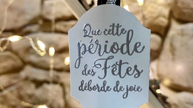 Ici j’ai créé une étiquette en utilisant la technique de l’embossage à chaud avec la poudre à embosser