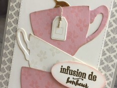 Hello hello On se retrouve aujourd’hui pour que je vous montre un autre modèle de carte sur ma thématique du moment, il s’agit du set de tampons « Petite tasse » coordonné aux framelits « L’heure du…