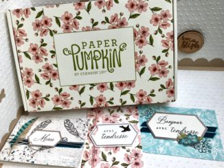 Bonjour tout le monde 😉 Je vous retrouve aujourd’hui pour vous présenter quelques petites cartes faites avec le contenu de la boite que j’ai reçue il y a quelques jours, la box Paper…