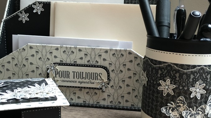 C’est un ensemble de bureau que j’ai réalisé pour égayer mon espace de travail au boulot puisque j’ai définitivement intégré le monde des administratifs, mais pas d’inquiétude, c’est un tout autre monde mais qui me plait vraiment, j’apprends beaucoup