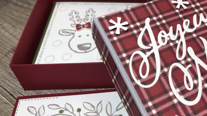 Je vous propose donc de réaliser cette boite de petites cartes de voeux 9×9 cm que vous pourrez envoyer le moment venu. Vous pouvez aussi profiter de ce projet pour faire un cadeau à quelqu’un qui pourra les envoyer à son tour