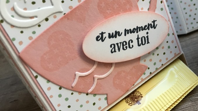 Vu la thématique du moment il s’agit d’une boite à thé, je ne vous ferais pas de tuto aujourd’hui car on le trouve facilement sur le net, par exemple chez Djudiscrap