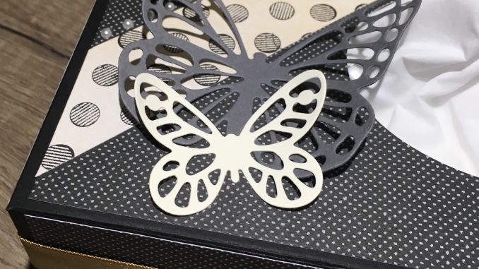 Je vous retrouve aujourd’hui pour vous donner le tuto que je vous ai promis, j’ai refait une boite pour offrir lors d’un autre atelier mais cette fois à une fan de papillons